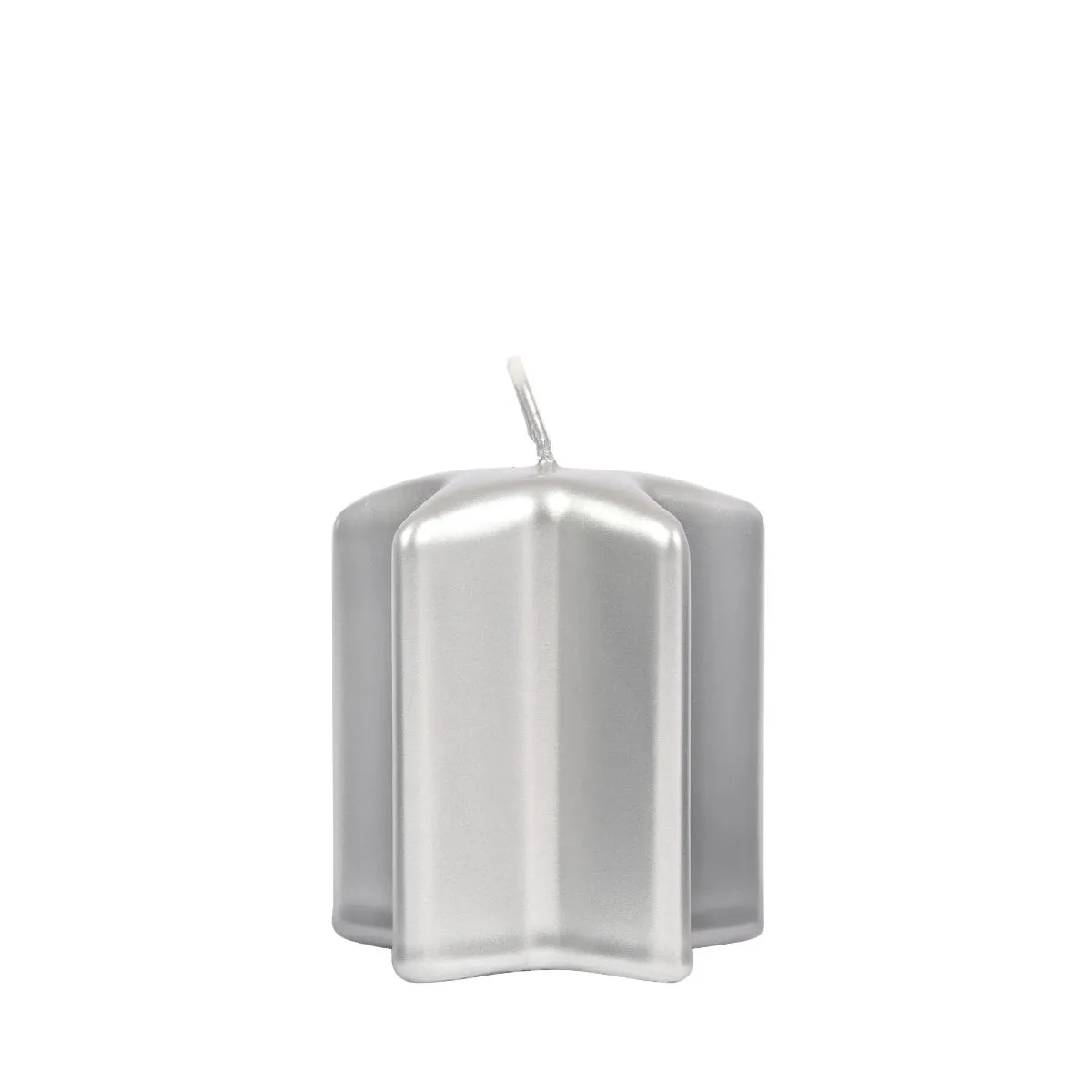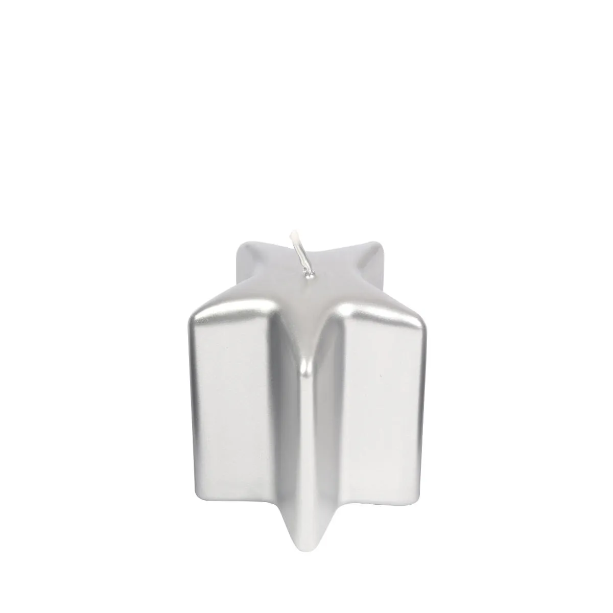 Świeca świąteczna gwiazda o wysokości 8cm. Dekoracyjna świeca parafinowa w srebrnym, metalizowanym kolorze. Świeca o czasie palenia do ok. 32 godzin, jest bezzapachowa i idealnie sprawdzi się jako dekoracja stroika, upominek lub dodatek do prezentu.