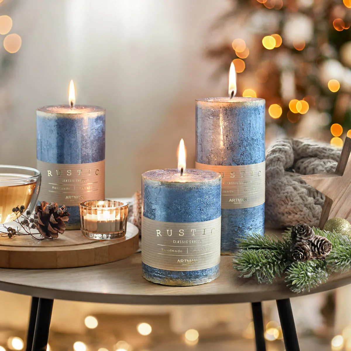 Dekoracyjna, bezzapachowa świeca Rustic w kształcie walca o średnicy 7cm, niebieska. Elegancka, patynowana świeca słupek wykonana z parafiny, o czasie palenia do ok. 50 godzin. Idealnie nadaje się jako dekoracja do stroików i świeczników i lampionów. Świetnie sprawdzi się również jako upominek lub dodatek do prezentu. Świeca wykonana ręcznie. Do produkcji użyto surowców, które posiadają wymagane certyfikaty bezpieczeństwa i jakości.