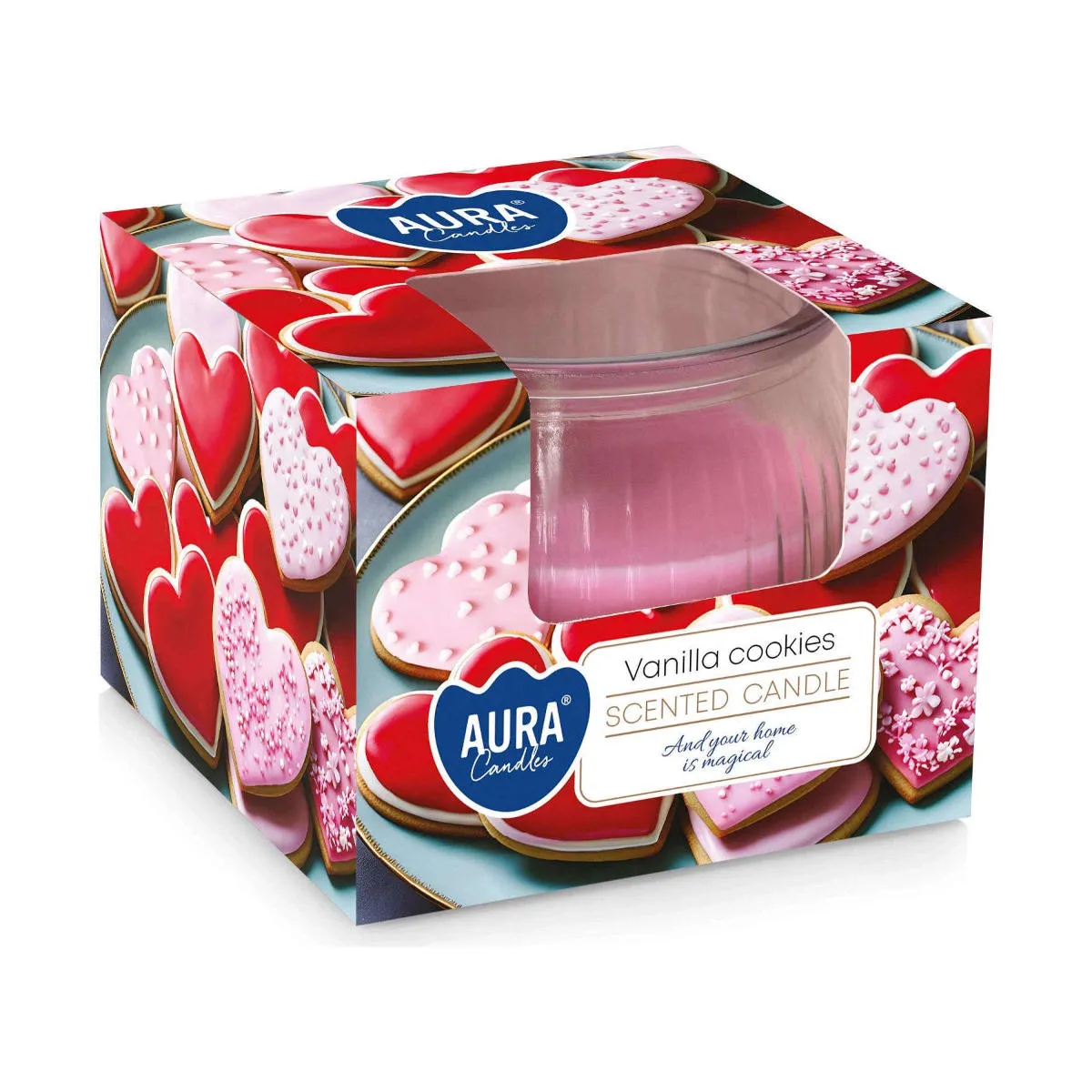 Świeczka w szkle o słodkim zapachu waniliowych ciastek. Świeczka o czasie palenia do 18 godzin, nadaje się do palenia wewnątrz, na tarasach lub altanach. Wygląda prezencyjnie zarówno jako element kompozycji jak i pojedynczo postawiona świeca. Świeca w dekoracyjnym szkle nie wymaga dodatkowego świecznika. Wysokiej jakości surowce użyte przy produkcji świecy zapachowej gwarantują optymalny czas i sposób użytkowania. Produkty marki Bispol posiadają atest PZH, wypalają się równomiernie, nie kapią i nie kopcą.