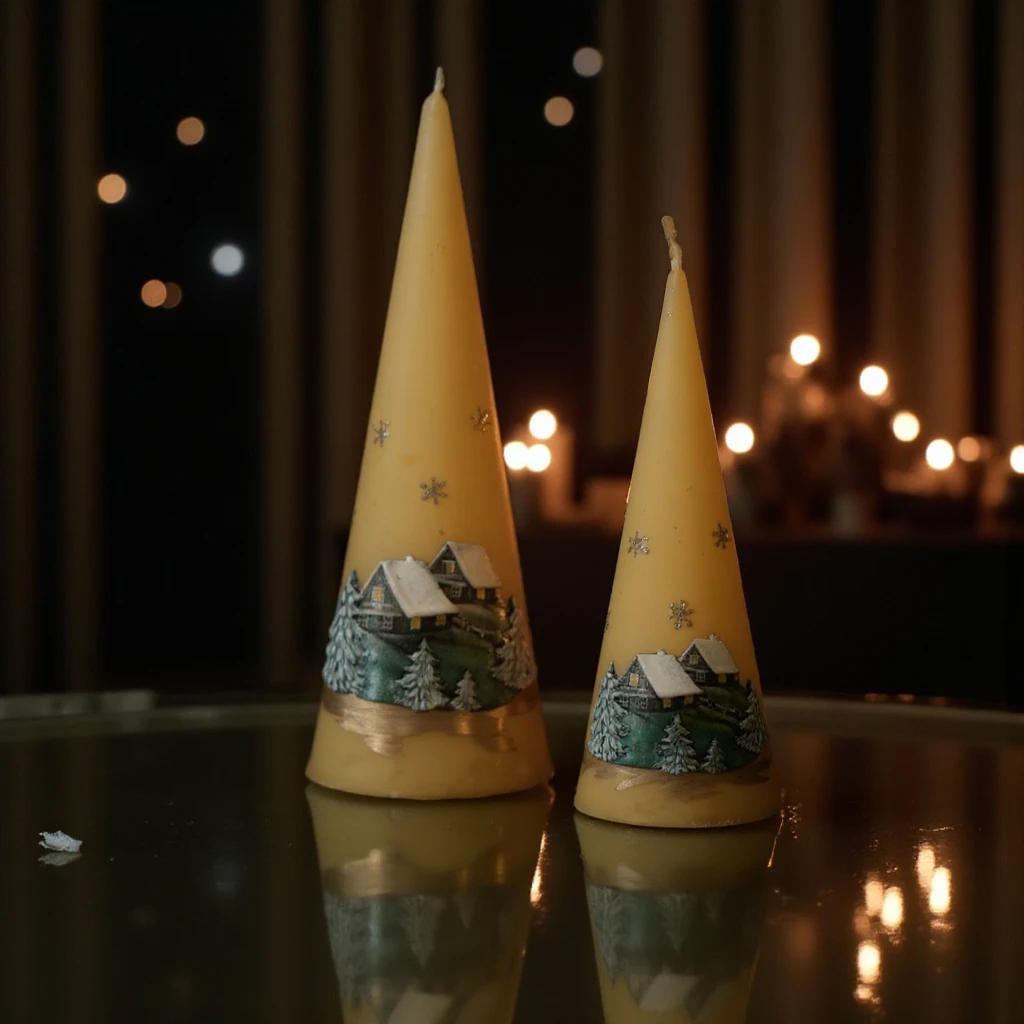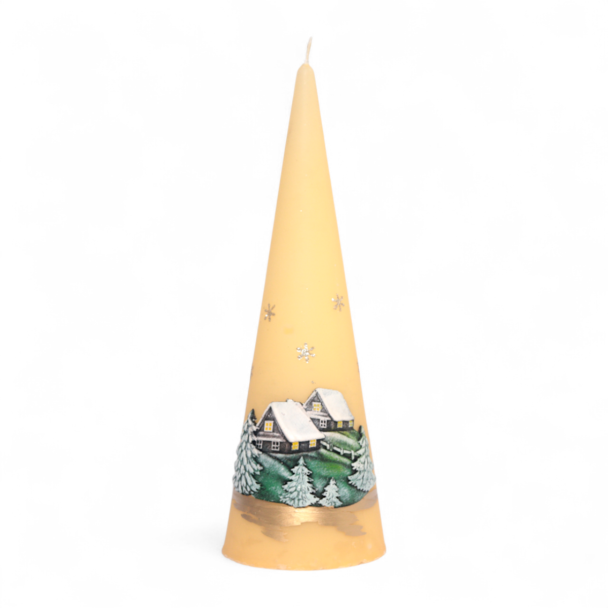 Świeca Zimowy Domek Stożek 8x24cm - Kremowy