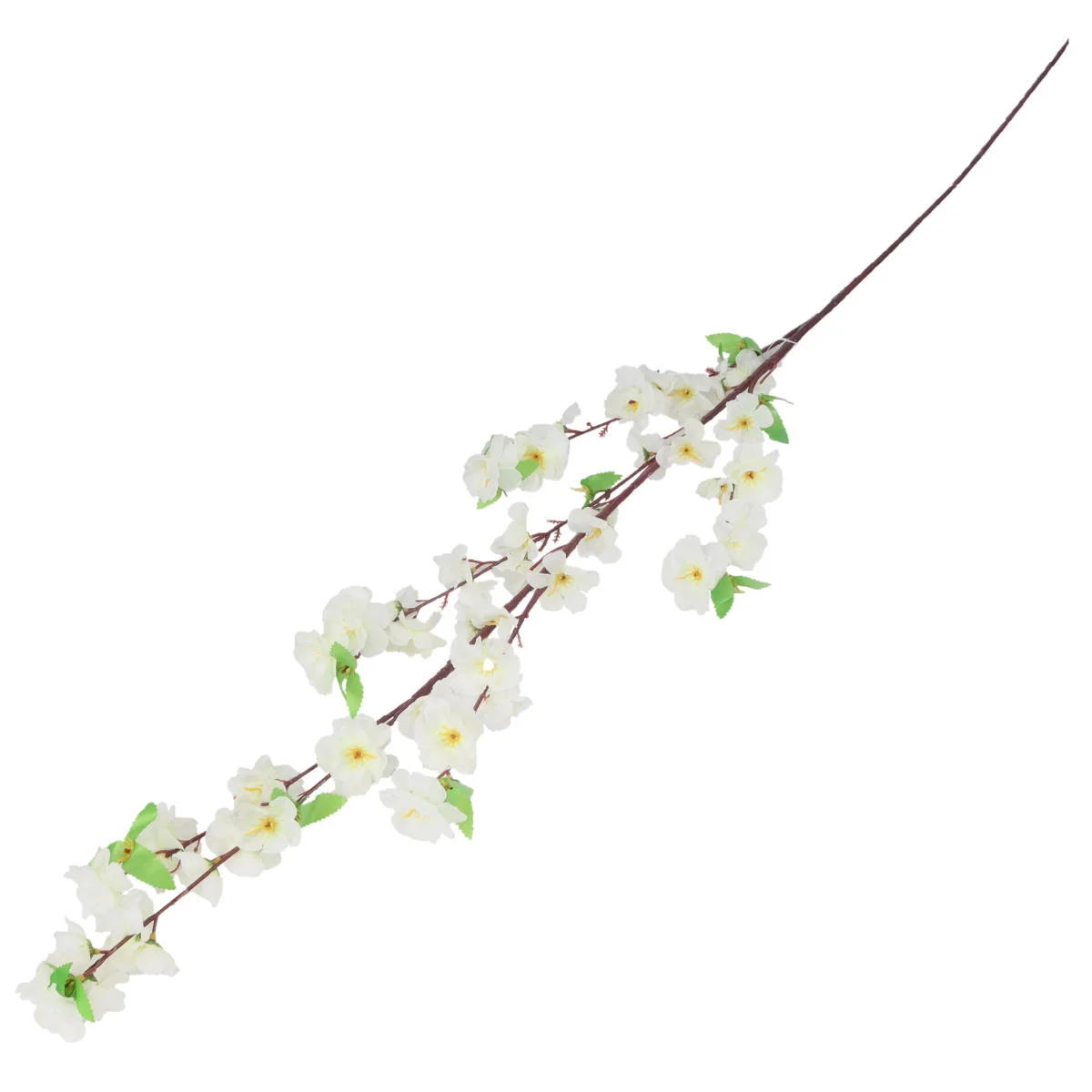 Sztuczna, długa gałąź kwitnącej jabłoni z białymi kwiatkami. Łodyga wykonana jest z elastycznego tworzywa sztucznego, a płatki kwiatów i listki z tkaniny syntetycznej. Całość prezentuje się bardzo naturalnie. Gałązka doskonale nadaje się do wykonania dekoracji domu, biura, sali lub kościoła. Kwiatki można oddzielić od łodygi i wykorzystać przy tworzeniu wianków lub stroików.