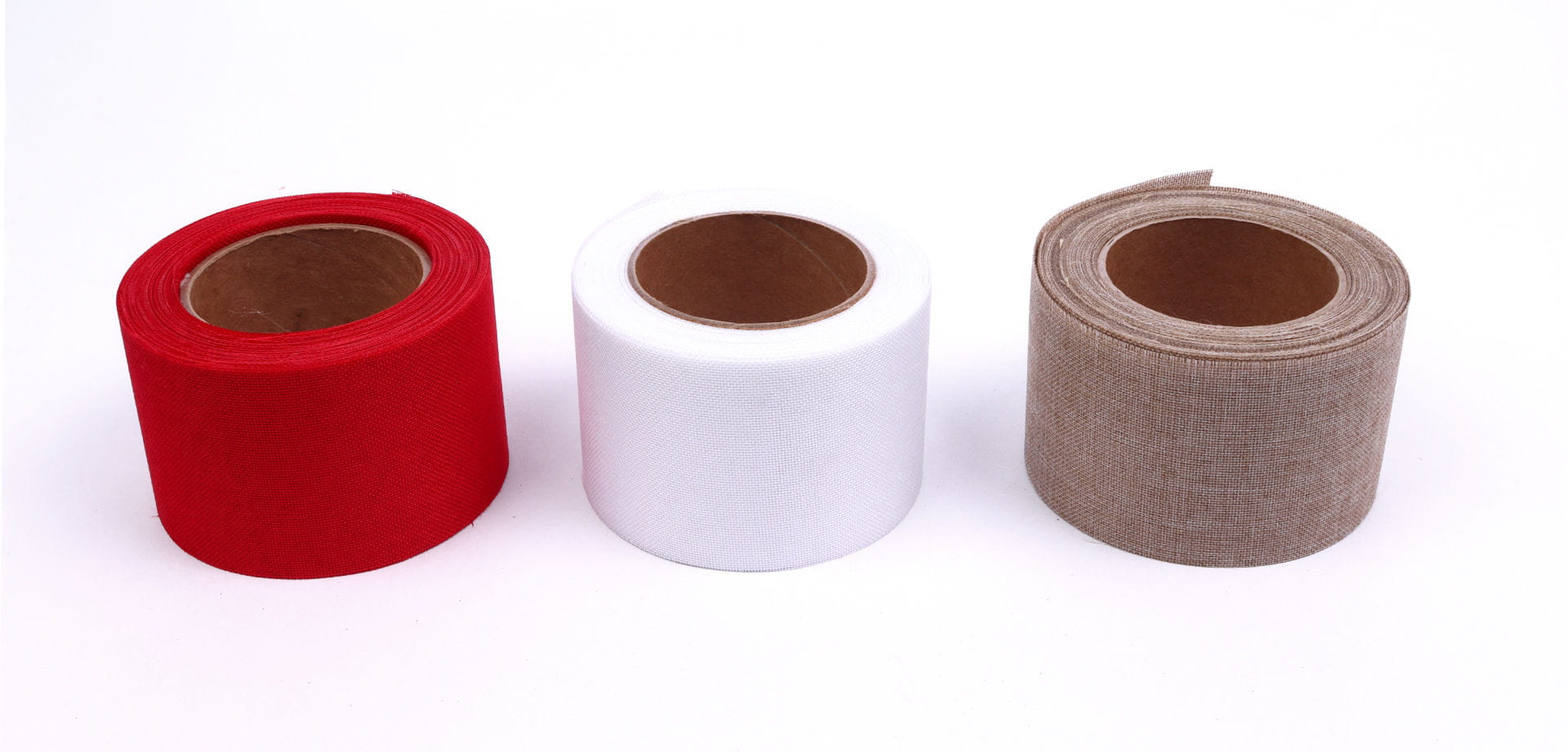Dekoracyjna taśma, wstążka jutowa, dostępna w 3 kolorach : czerwonym, białym i naturalnym.