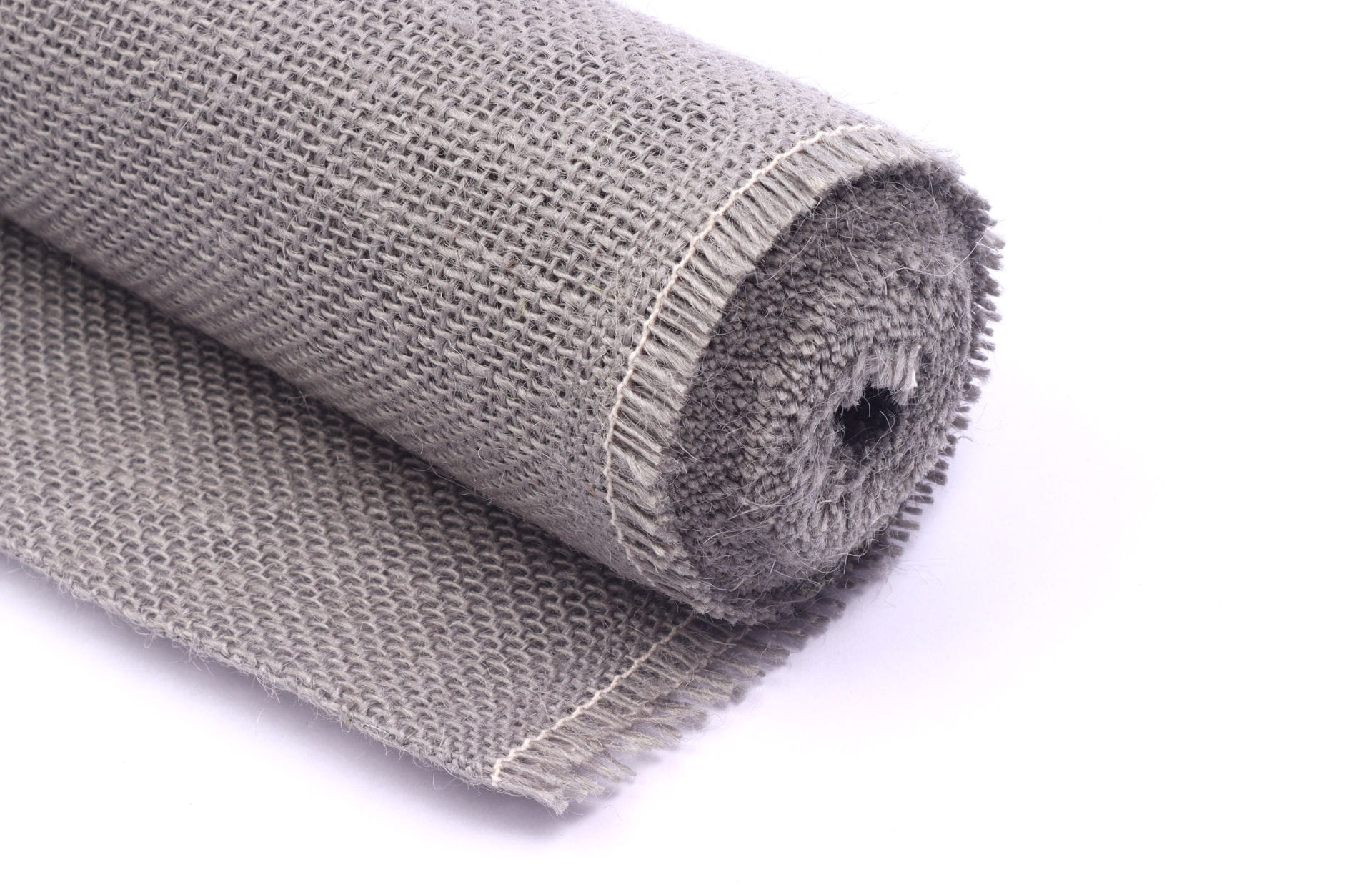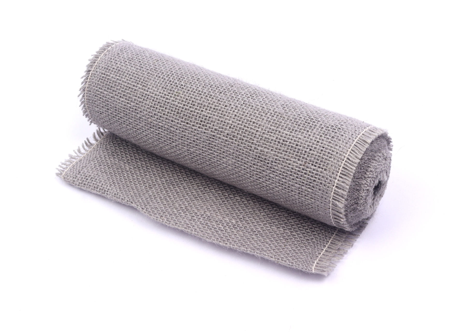 Dekoracyjna tkanina jutowa w szarym kolorze.