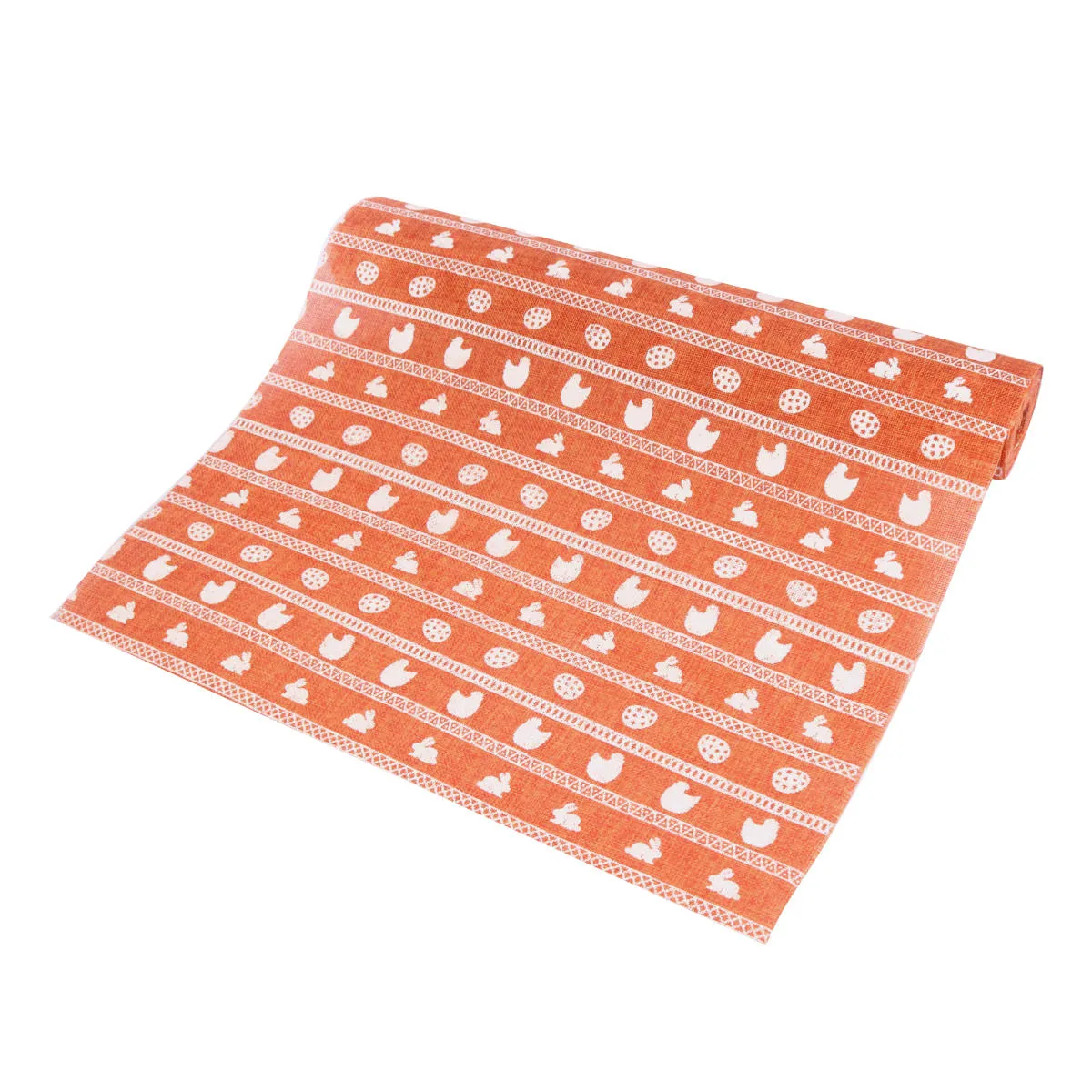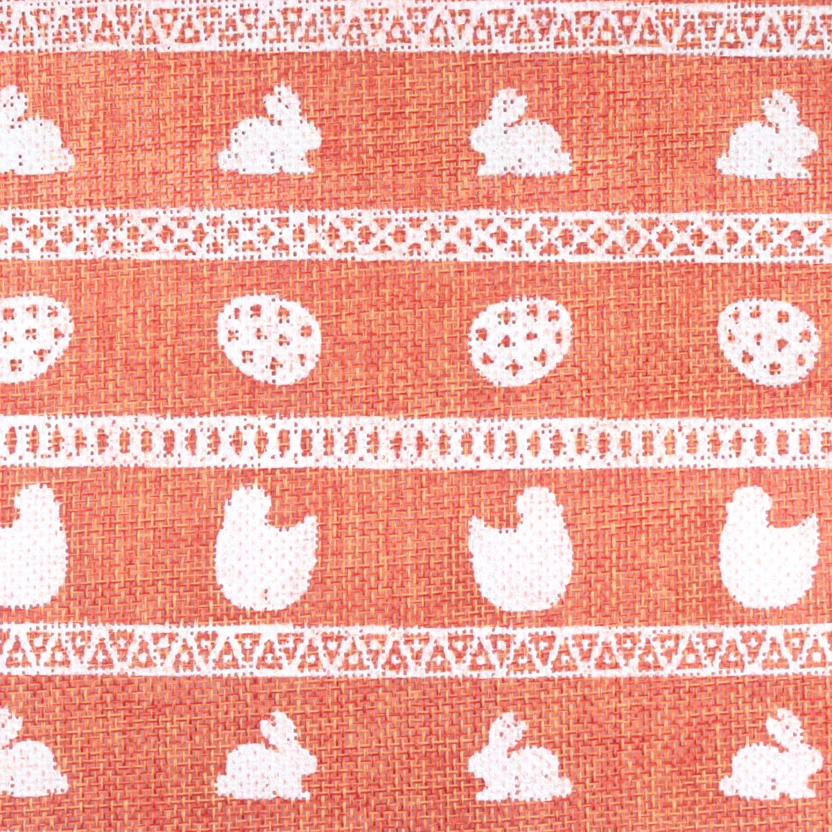 Dekoracyjny bieżnik wielkanocny wykonany z tkaniny jutowej. Rolka ma szerokość 47cm i zawiera 4,5mb tkaniny. Dostępny kolor pomarańczowy z tym samym wielkanocnym wzorem. Ze względu na materiał oraz stylistykę wzoru bieżnik z juty idealnie będzie pasować do innych dekoracji z Kolekcji Natura.
