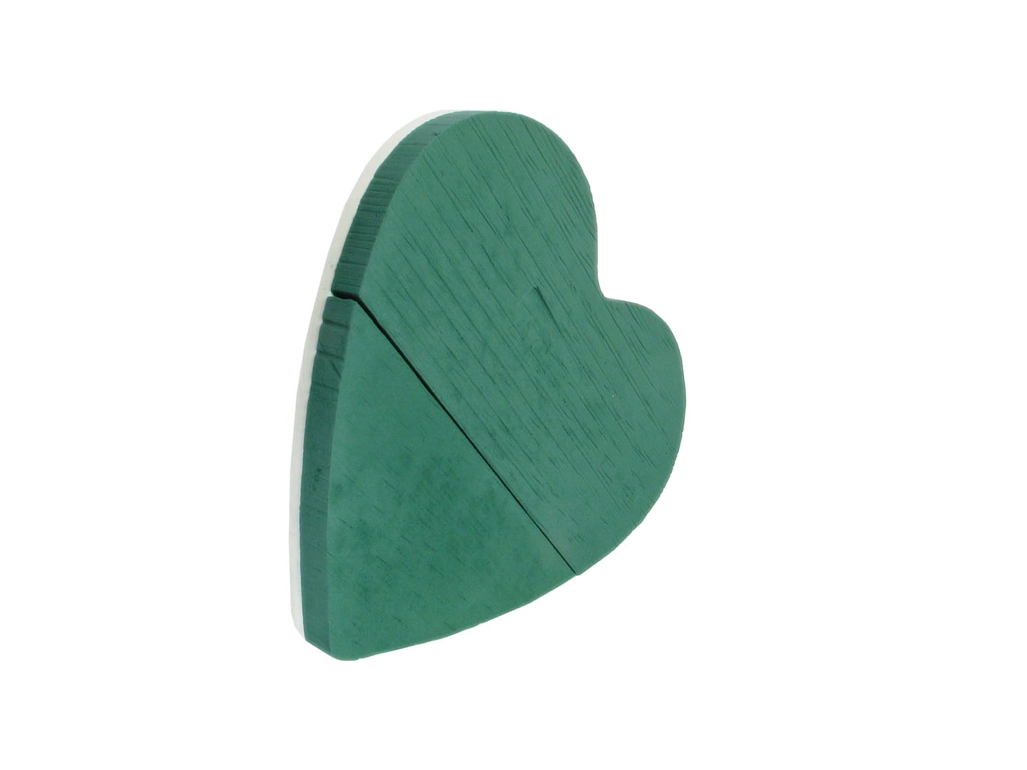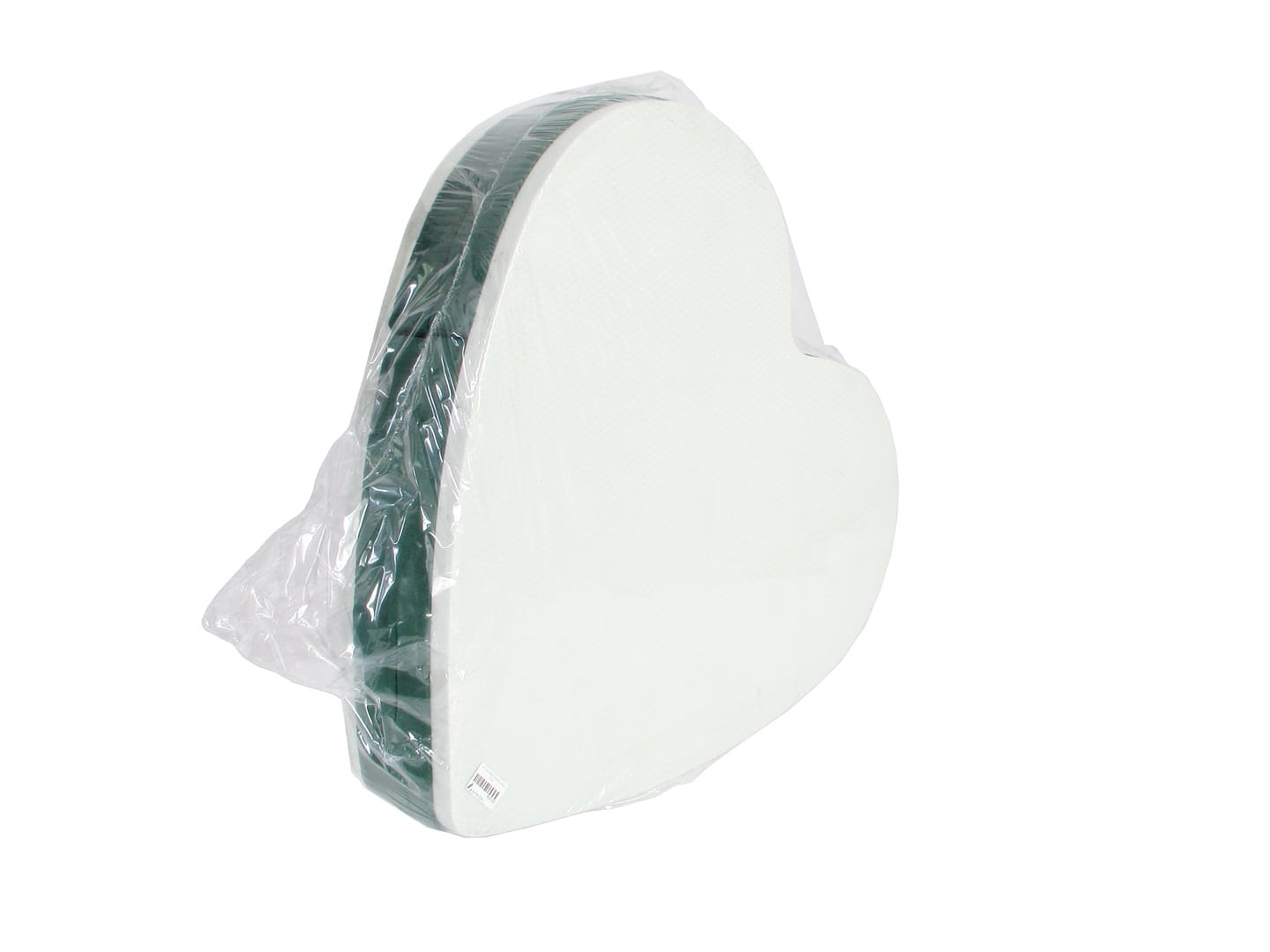 Duża pełna gąbka florystyczna w kształcie serca na podstawie ze styroduru. Wytrzymały spodni materiał ma za zadanie zabezpieczyć miękką gąbkę przed wgnieceniami od dołu. Skład chemiczny pianki florystycznej zapobiega rozwojowi bakterii w środowisku mokrym, co wydłuża okres świeżości roślin.