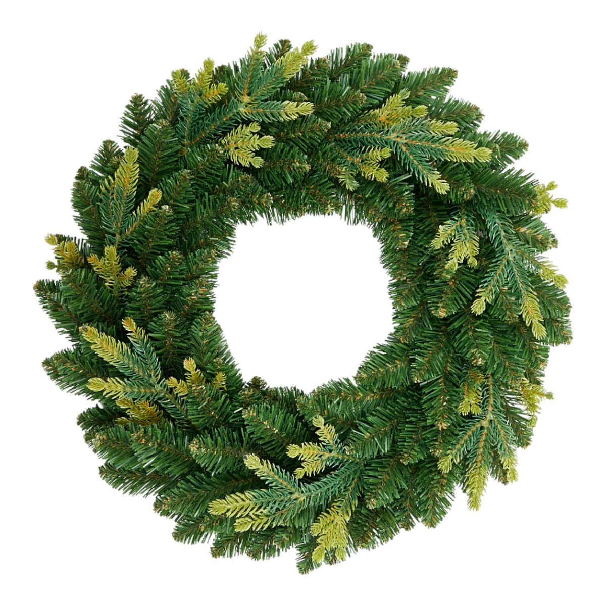 Gęsty, dekoracyjny wianek z serii Aura, z igliwiem w dwóch odcieniach koloru zielonego. Wianek z gałązkami doskonale imitującymi wygląd naturalnych gałązek iglastych. Wykonany z wysokiej jakości surowców, trwałej folii PCV, która nie zawiera szkodliwych związków. Wianek charakteryzuje się dużą gęstością gałązek i ma zwięzłą strukturę. Gałązki mają obłe końcówki, dzięki czemu wyglądają bardziej naturalnie, można je dowolnie formować. Wianek o średnicy 55cm, idealnie nadaje się jako ozdoba drzwi, okna lub kominka.