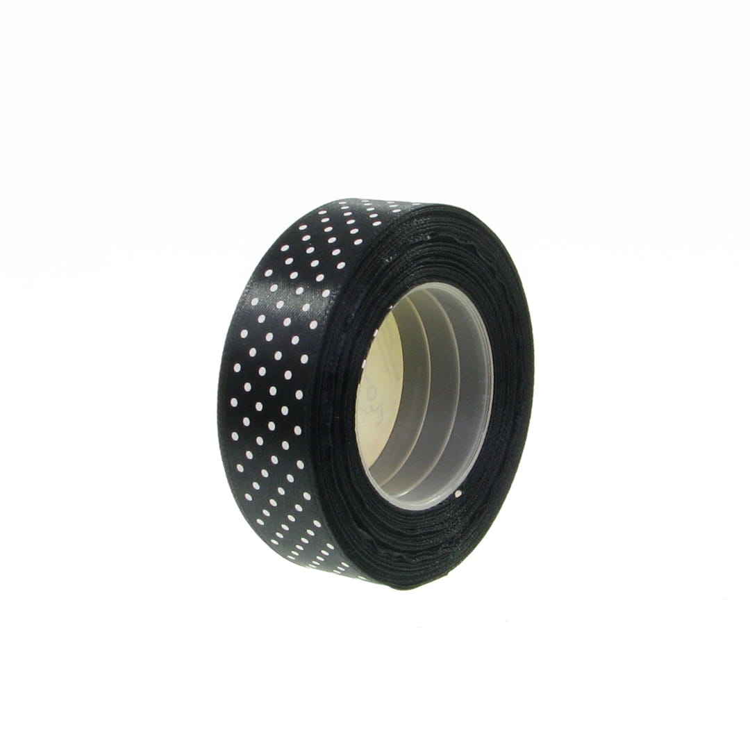Wstążka Satynowa w Kropki 25mm 22,5mb – Czarny Nr 39