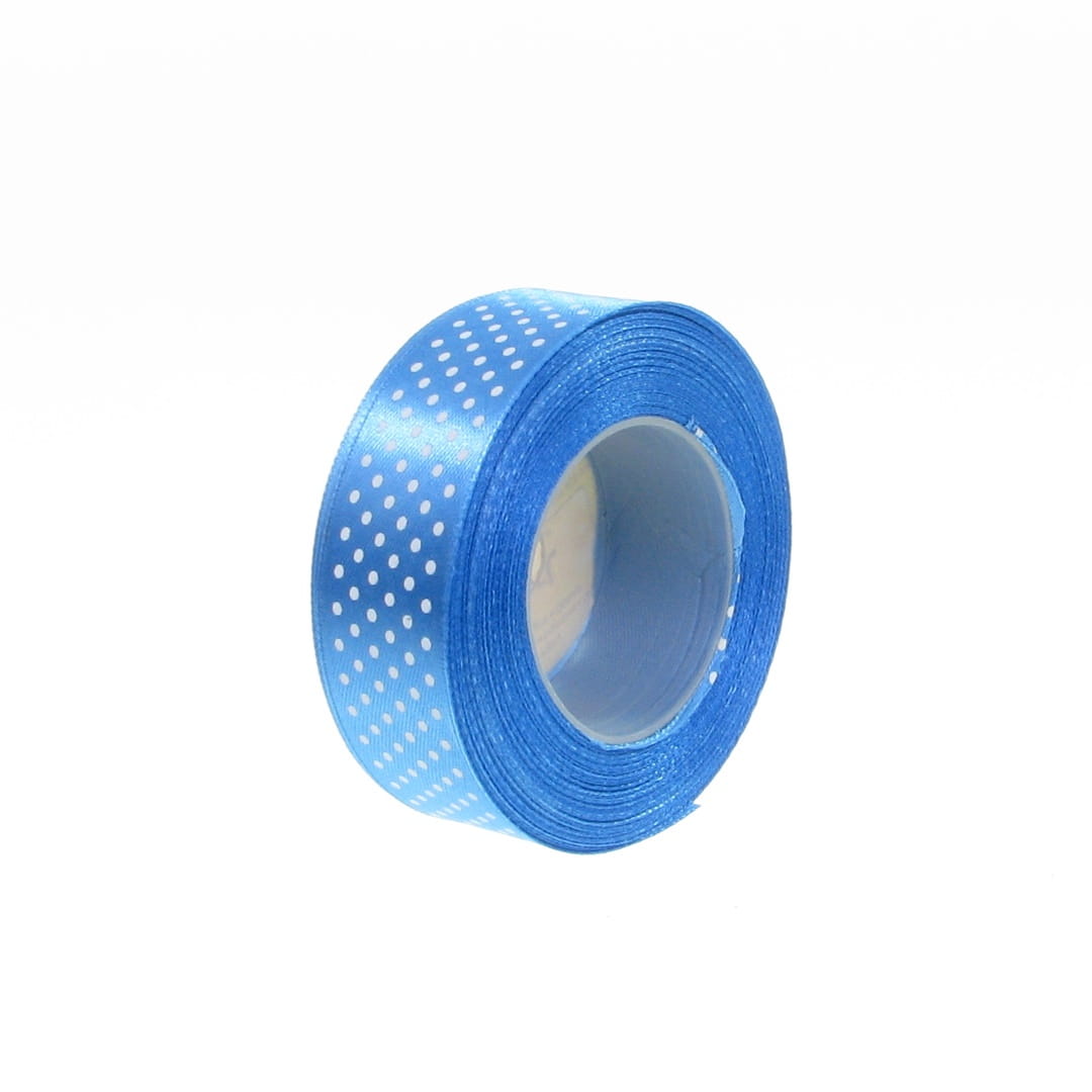 Wstążka Satynowa w Kropki 25mm 22,5mb – Niebieski Nr 121