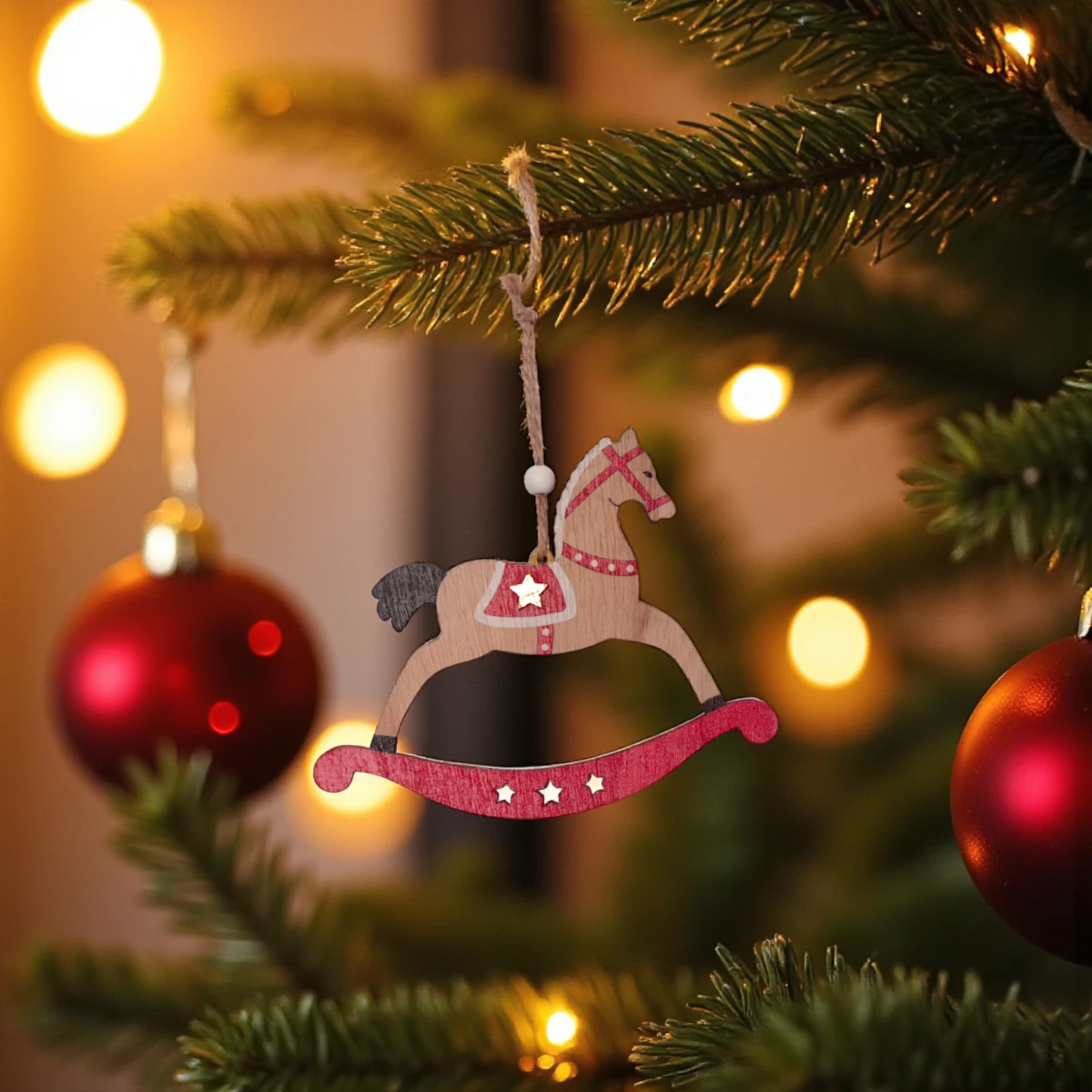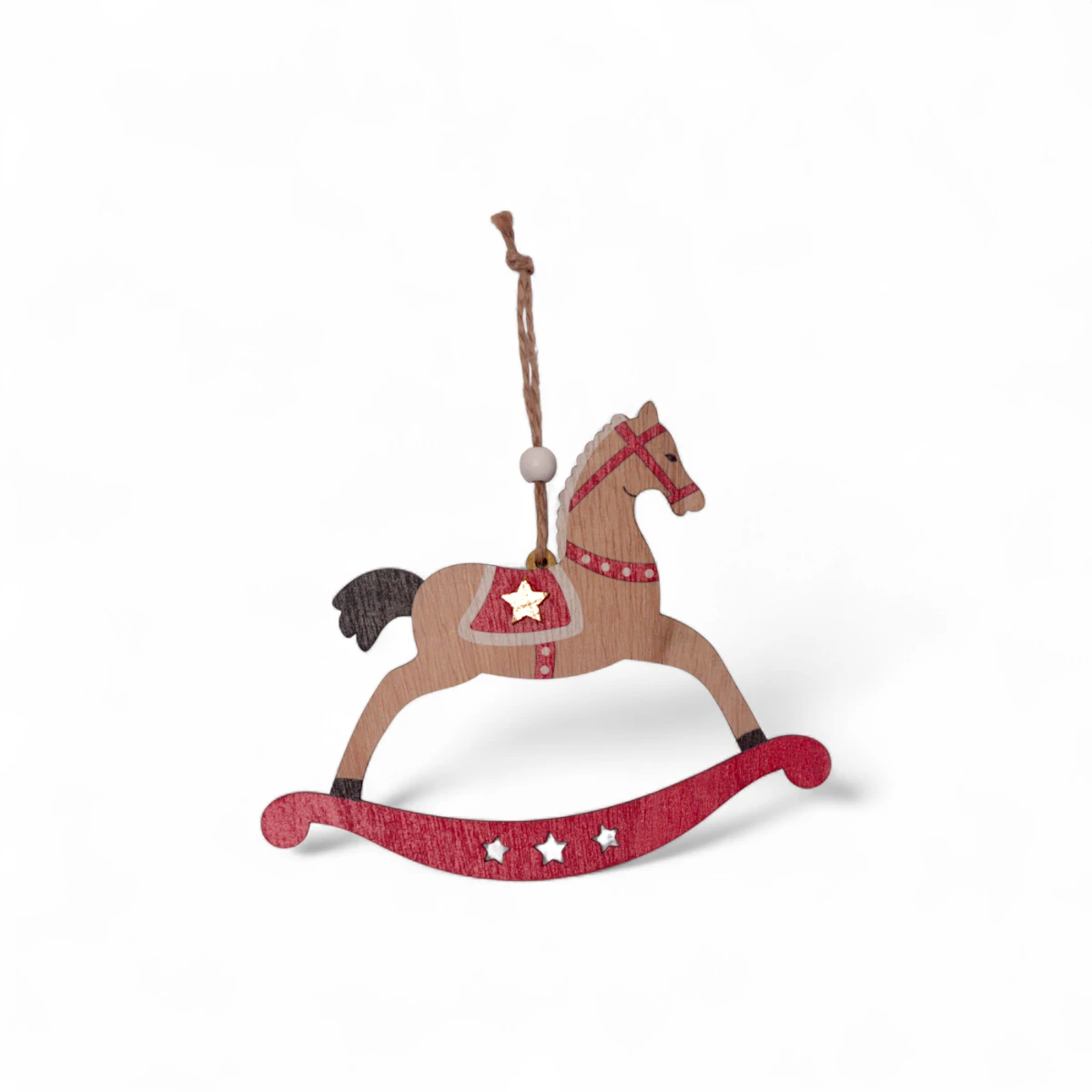 Dekoracyjna zawieszka, drewniany konik na biegunach. Jednostronnie ozdobiona zawieszka, konik na płozach o wymiarach 12x15cm. Posiada naturalny sznureczek umożliwiający zawieszanie. Figurka sprawdzi się jako element stroika. Idealnie nadaje się również na upominek lub dodatek do prezentu. Dzięki naturalnym materiałom, świetnie skomponuje się z dodatkami w stylu EKO. Całość wykonana jest z dbałością o detale. Doskonale nadaje się jako dekoracja zarówno do domu jak i do szkoły czy przedszkola.
