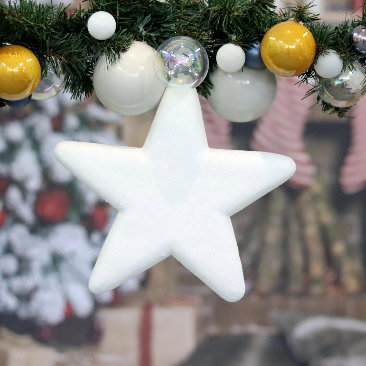 Zawieszka Gwiazda Styropianowa 25cm z Brokatem - Biały